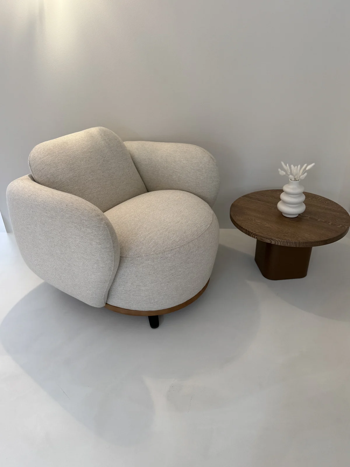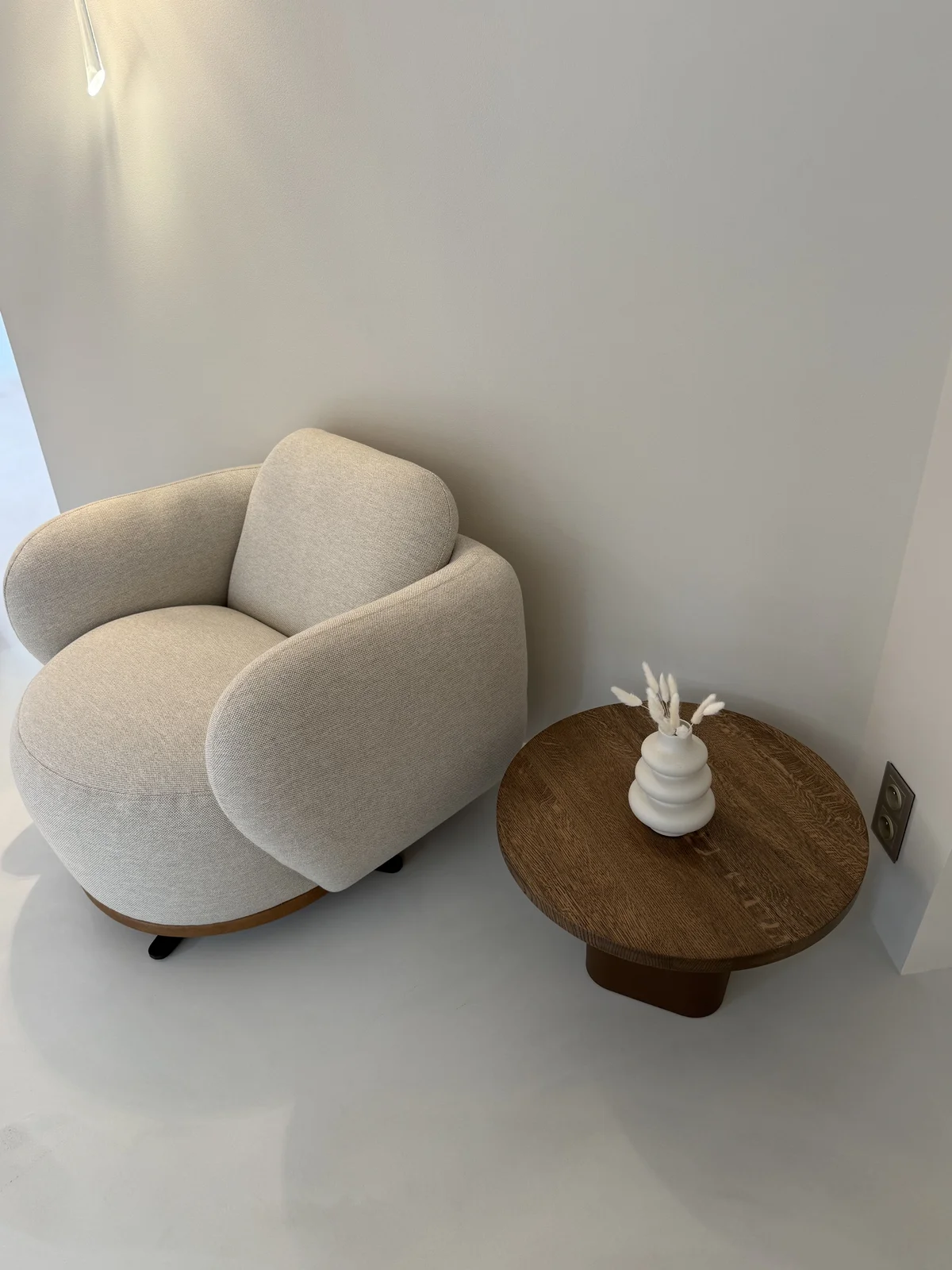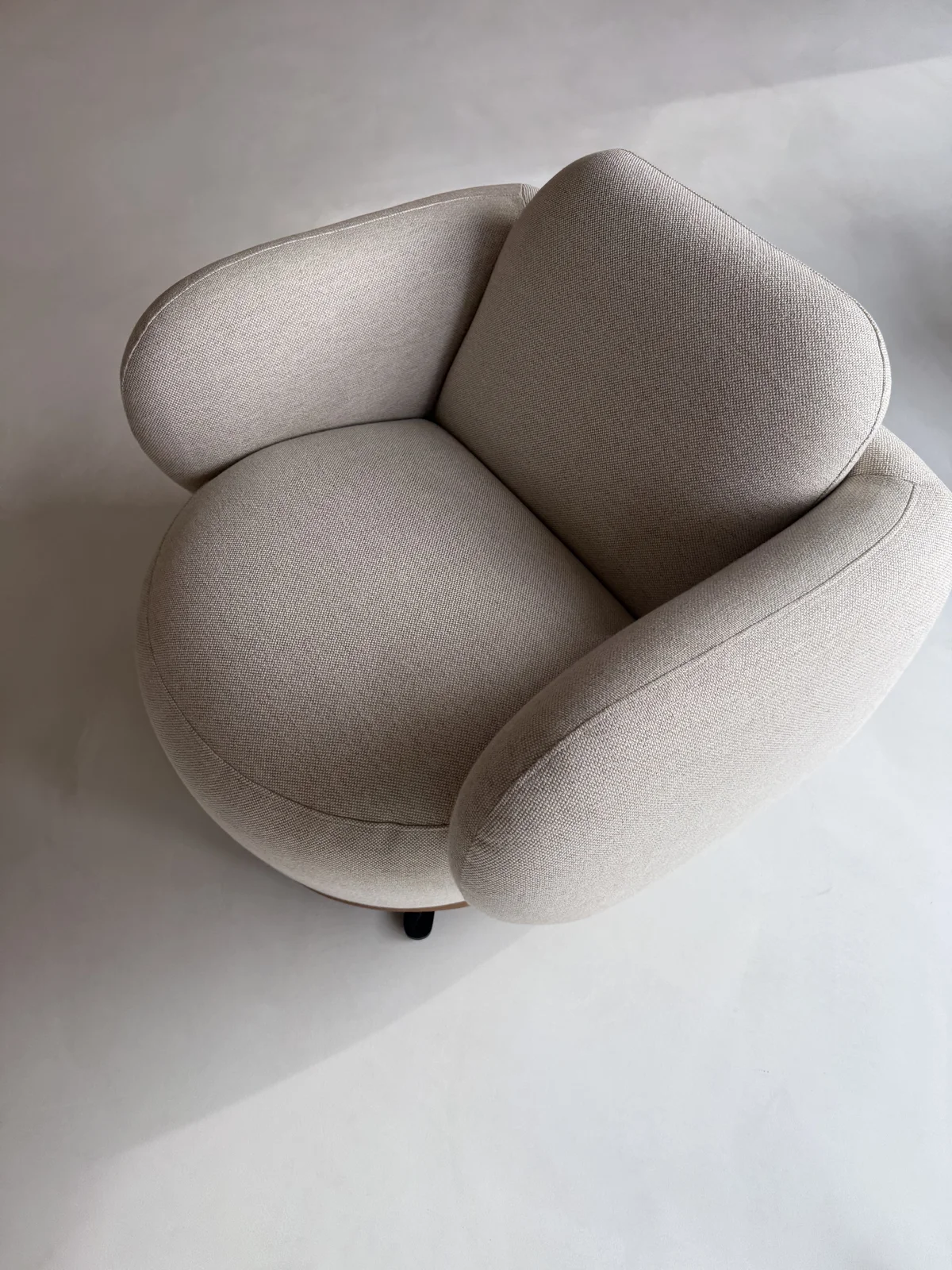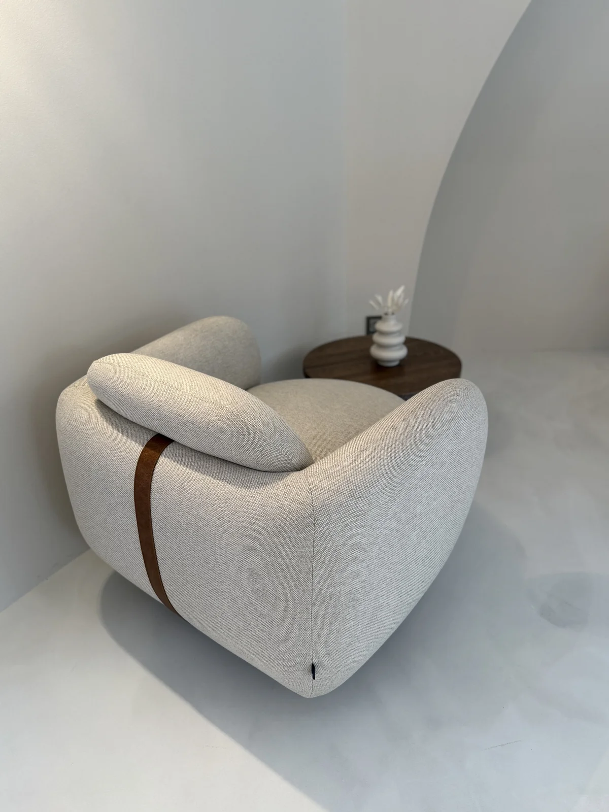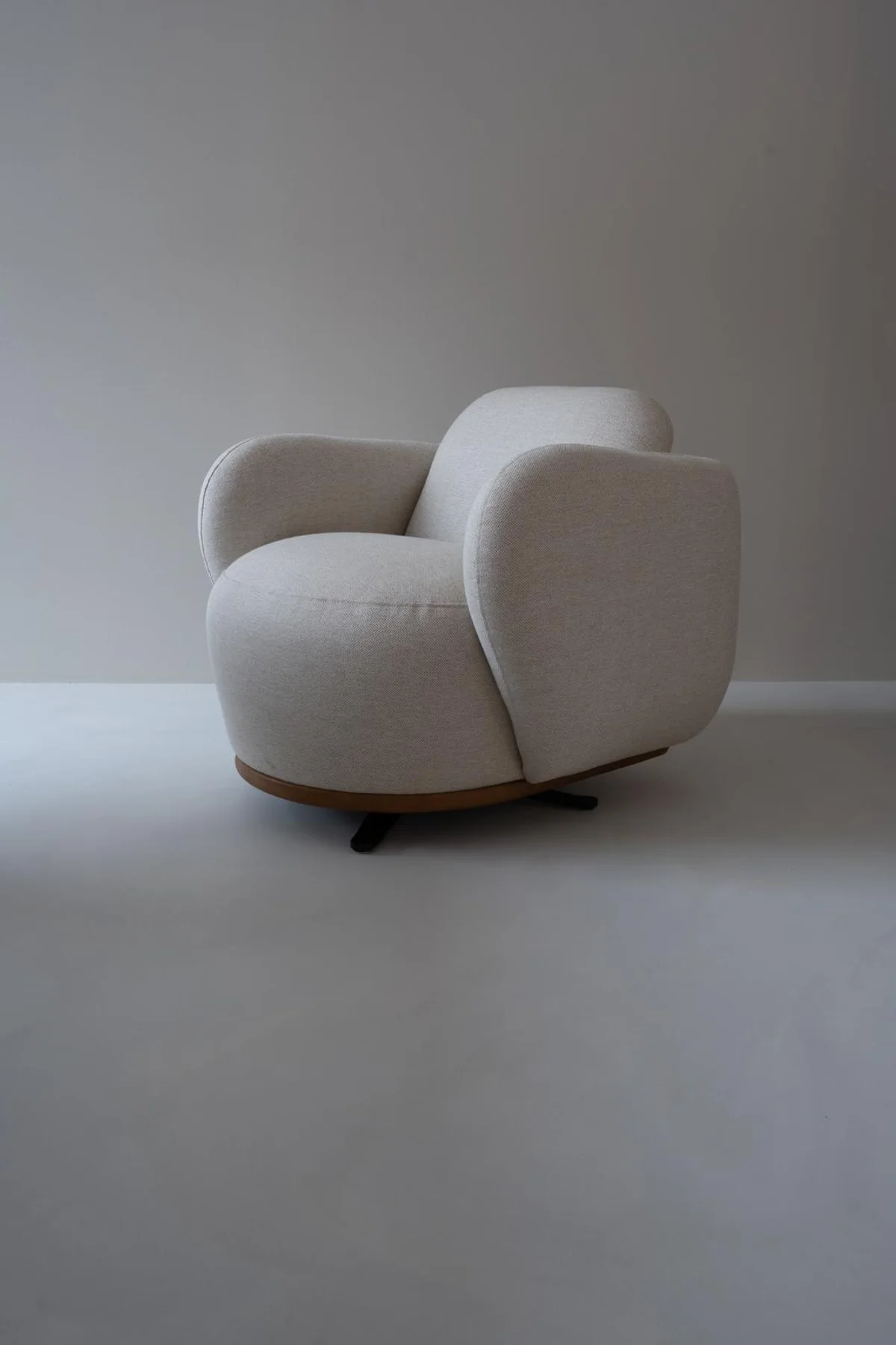 Fotel Molière to synonim wygody i stylu. Jego zaoblona, puszysta forma oraz ergonomiczne podłokietniki i poducha oparciowa gwarantują komfort na najwyższym poziomie. Choć jest obszerny i miękki, zachowuje elegancką, smukłą linię, doskonale wpisując się w nowoczesne wnętrza. Obrotowa podstawa sprawia, że fotel świetnie sprawdza się w salonie, gabinecie czy sypialni. Możliwość personalizacji tkaniny – od Easy Clean po naturalne materiały – oraz opcjonalny skórzany pasek z tyłu dodają mu unikalnego charakteru.